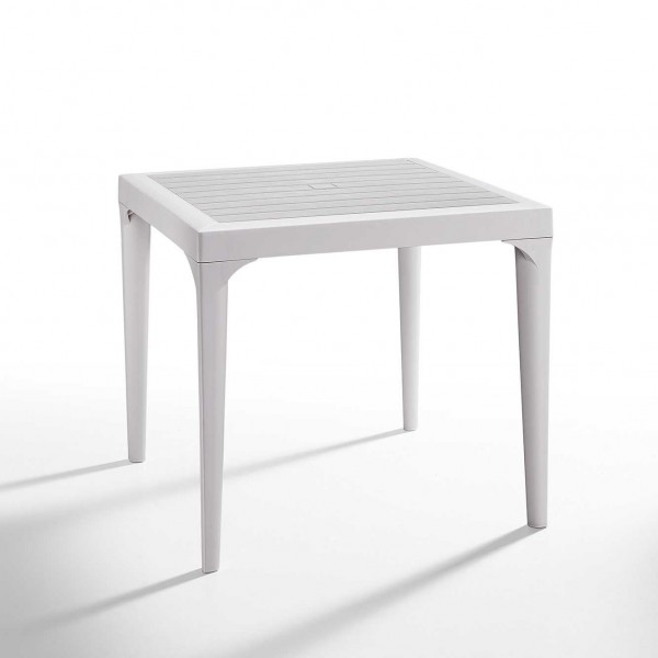 Table empilable en polypropylène avec plateau effet bois. Design moderne pour jardin, véranda, maison, bar, pub, restaurant, pizzeria, pâtisserie, traiteur, mariage au meilleur rapport qualité-prix.