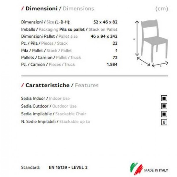 La chaise Vesta se distingue par sa robustesse, sa fonctionnalité et son design linéaire. La simplicité de ses formes la rend particulièrement polyvalente, adaptée pour être placée dans les environnements modernes et classiques. Vesta est la chaise qui trouve le bon compromis entre confort et sens esthétique. Extrêmement pratique, elle est empilable, donc facile à manipuler et à transporter d’un environnement à l’autre.