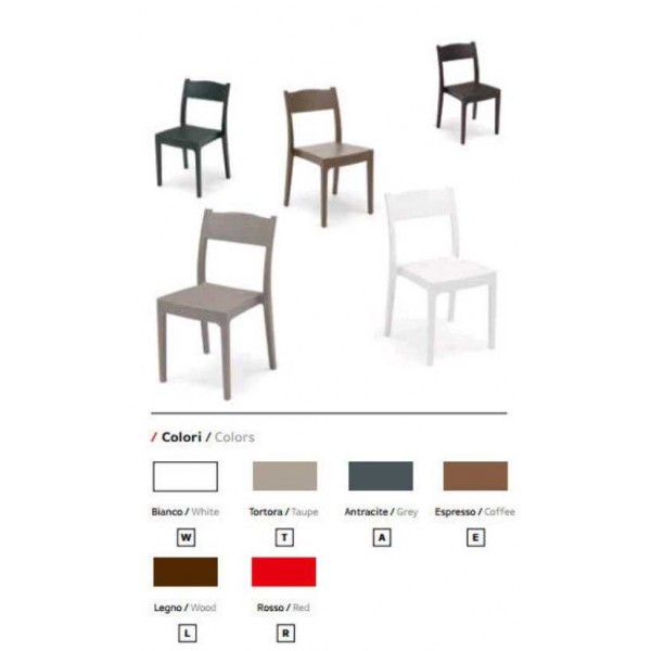 Chaise de modèle Vesta en polypropylène empilable pour l’extérieur , économique et moderne pour jardin, véranda, maison, bar, pub, restaurant, pizzeria, pâtisserie au meilleur rapport qualité-prix.